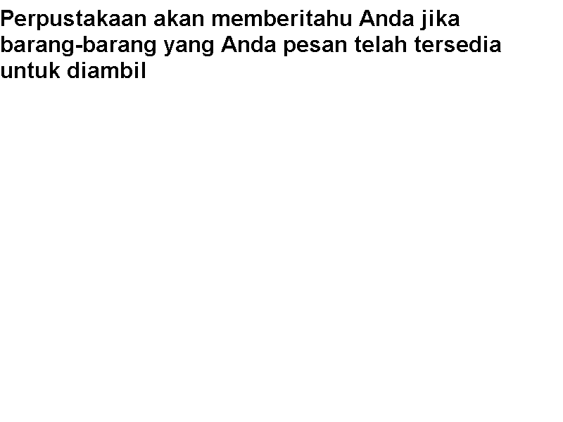 Perpustakaan akan memberitahu Anda jika barang-barang yang Anda pesan telah tersedia untuk diambil