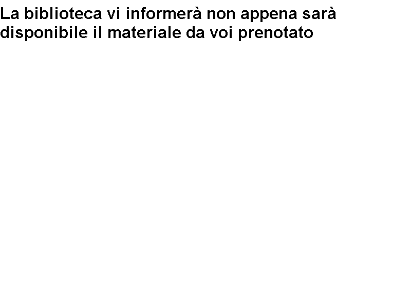 La biblioteca vi informerà non appena sarà disponibile il materiale da voi prenotato