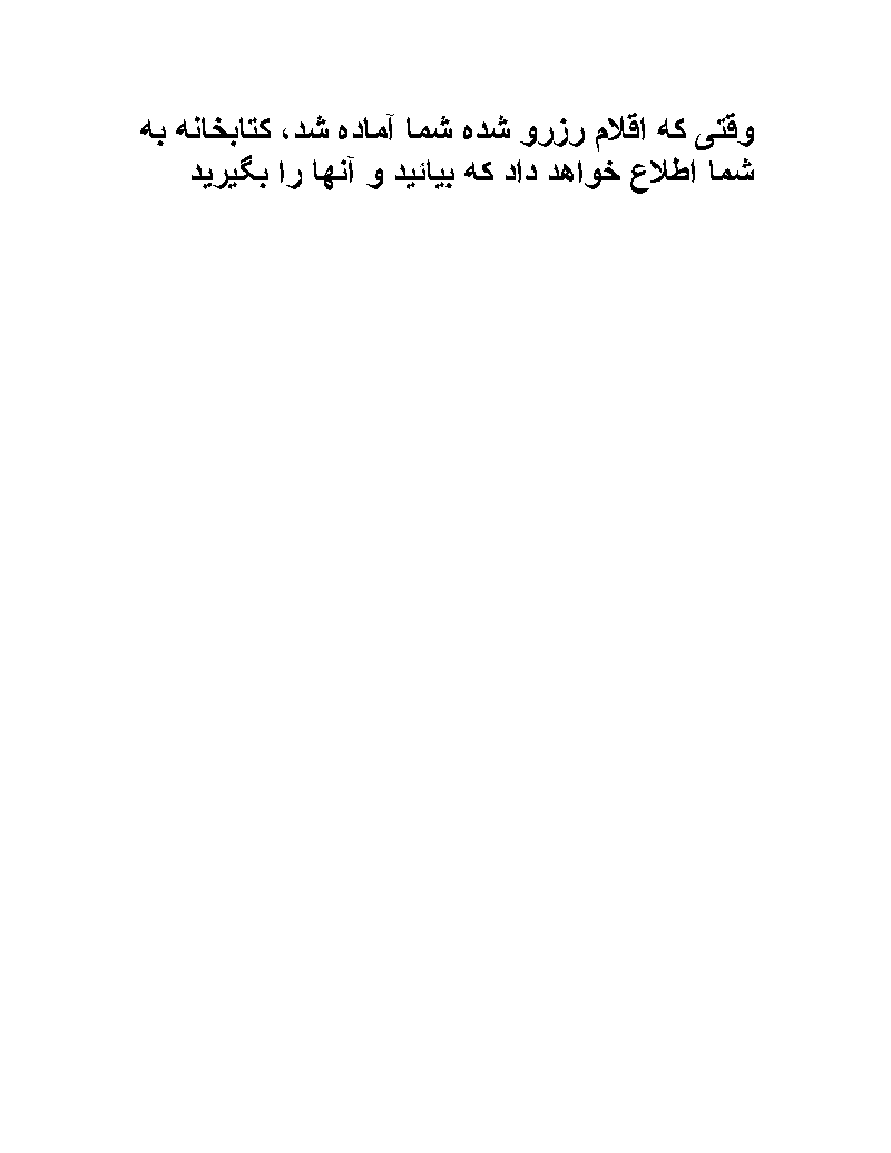 وقتی که اقلام رزرو شده شما آماده شد، کتابخانه به شما اطلاع خواهد داد که بیائید و آنها را بگیرید.