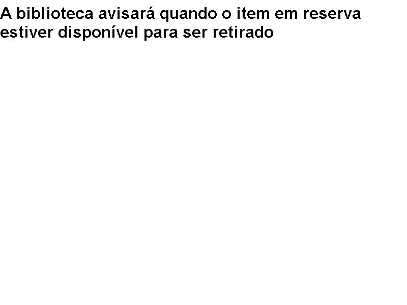 A biblioteca avisará quando o item em reserva estiver disponível para ser retirado
