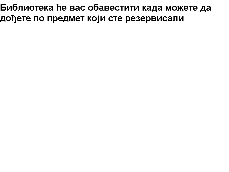 Библиотека ће вас обавестити када можете да дођете по предмет који сте резервисали