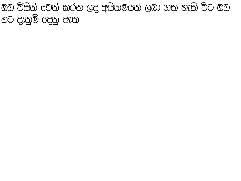 Download imageDownload Word documentDownload fontHow to install this fontSee this phrase in other languagesFind other phrases in Singhalese