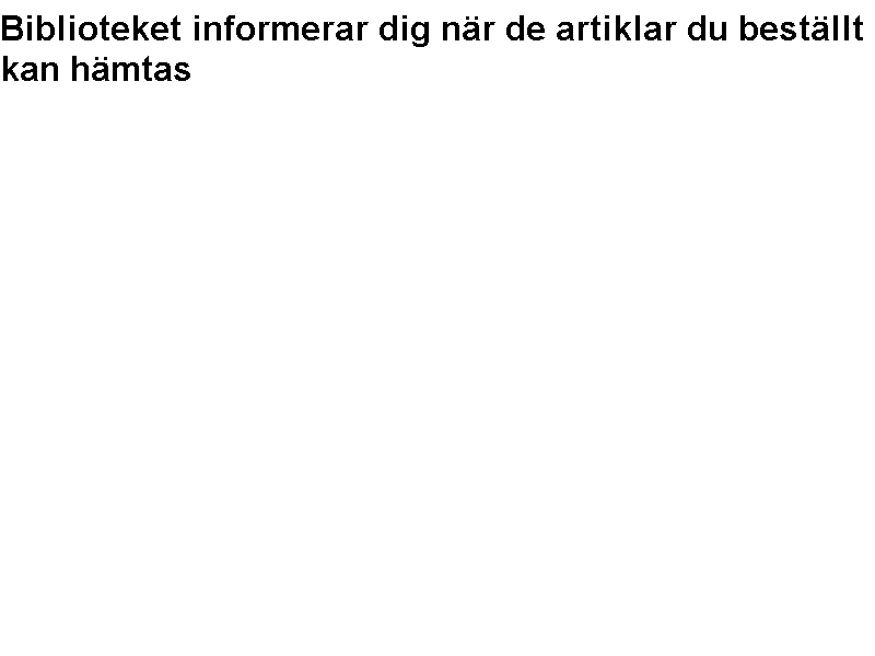 Biblioteket informerar dig när de artiklar du beställt kan hämtas