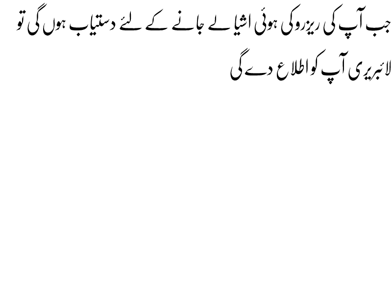 جب آپ کی ریزرو کی ہوئی اشیا لے جانے کے لئے دستیاب ہوں گی تو لائبریری آپ کو اطلاع دے گی
